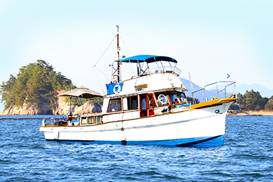 こいねがいて かしこみ 申(もう)すそして、まつりぬしが一足先に乗船して、船上に供えられていたお酒を、船の周りを一周しながら、海中に撒いていきます。この清めの儀式が終われば、散骨の参加者が乗船し、指定の海域に到着すると、まつりぬしの祝詞が奏上されます。